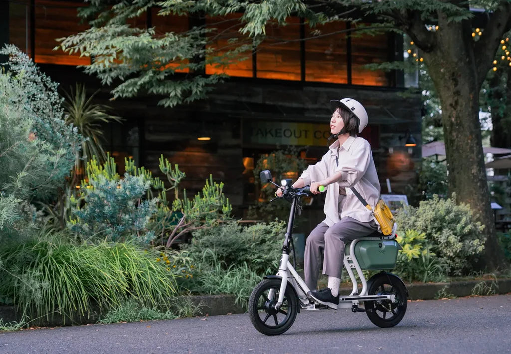 NEW RIDEは、安心安全に座れる乗車姿勢、坂道も快適で力強い登坂力、大きな収納ケースに電子ロック機能など、機能と利便性を追求した次世代電動モビリティです。